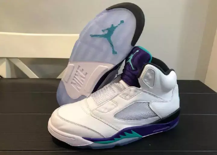 这款无绑带设计的 Air Jordan 5 是以在《新鲜王子妙事多》 中本色出演的威尔 · 史密斯上脚的拆掉鞋带的 Air Jordan 5 白紫葡萄为灵感打造,而经典的白紫葡萄配色便是为其吸了一波人气,而值得一提的是此双采用了 Nike 后跟,更是提高了它的收藏价值!