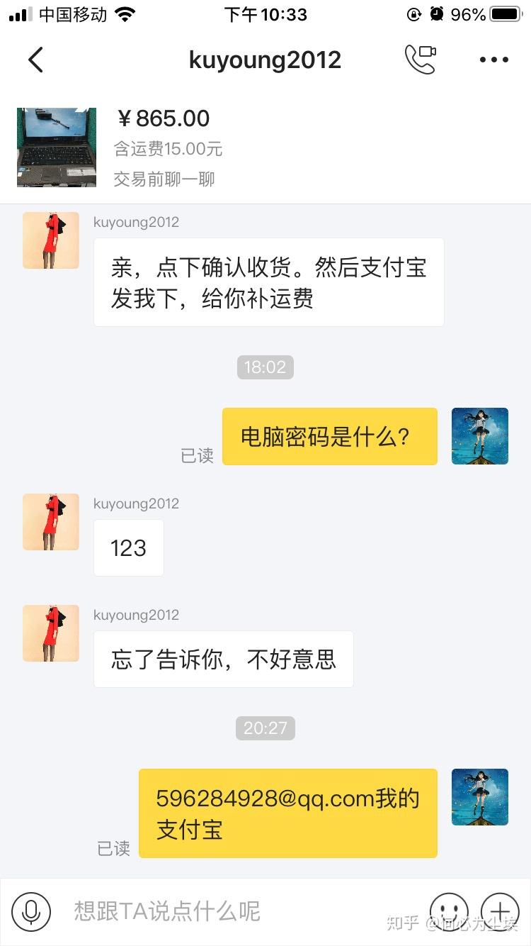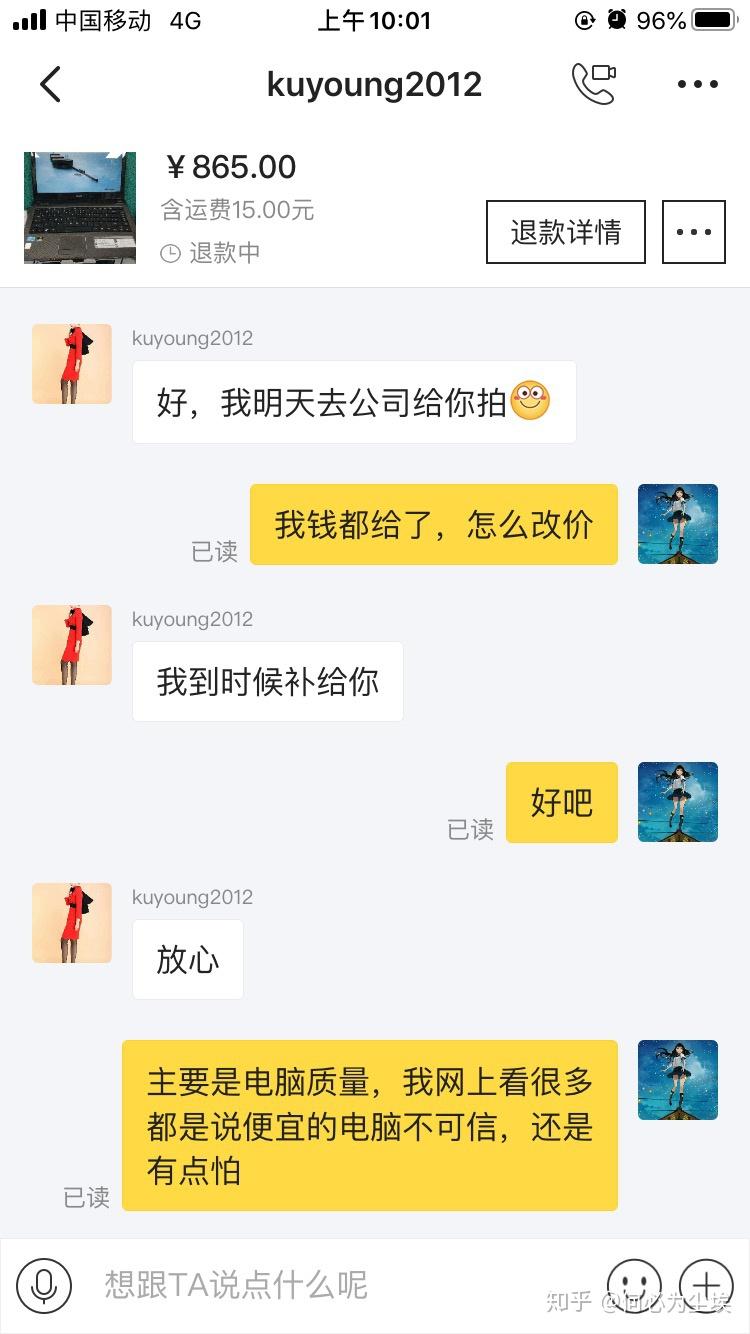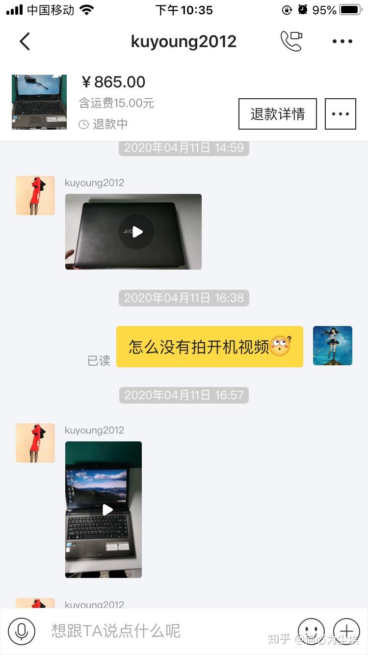 今年4月想买一台电脑,没有多少钱想买一台能看电影,简单的办公就行了,在咸鱼上看见很多只要几百的电脑,500至1000多的都有,配置大多都是i5的甚至还有i7的,4月11号我看上一款宏基的电脑i5的处理器,显卡是独显518内存的,4g运行内存,500机械硬盘当时感觉不错,办公应该带的走,就和卖家联系了865元包运费,和他商量800元买,他同意了,邮费我出,他让我拍下他改价格,我真是太相信他了,直接就拍下付了款,价格都没有改,他说价格之后补给我