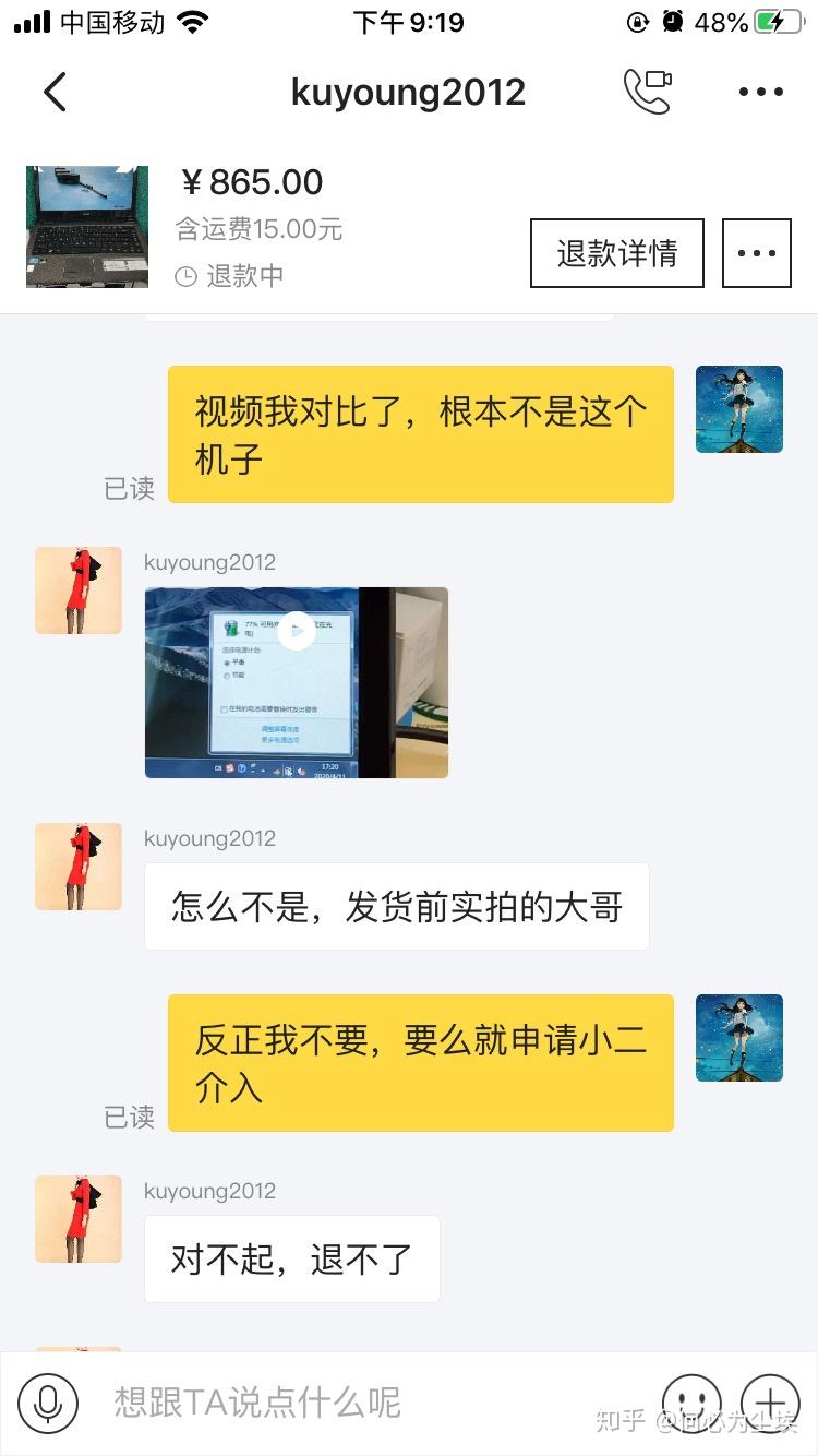 于是我马上找卖家说他电脑有问题,我要退货,他当然不愿意了,好不容易把烂电脑卖出去