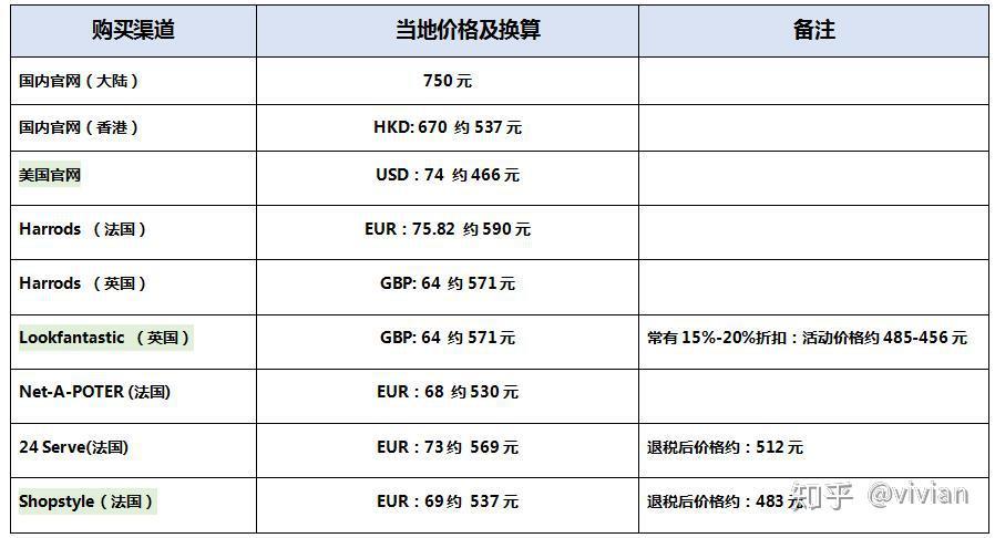 可以看到:美国官网、Lookfantastic、以及Shopstyle上面的价格相对性价比高。美网不能申请购物退税、look上呢要有活动才划算、Shopstyle购物可以申请海淘退税。
