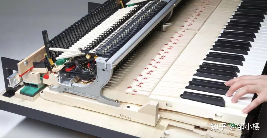 所谓GHS,逐渐配重,意思是,模精品机械钢琴,低音区用大锤子锤、高音区用小锤子锤的感觉,每个音区通过不同的重锤来达到逐级分段的效果。你在电商广告看到的“重锤”就是这个意思。有的人说电钢琴手感很辣鸡模拟个锤子,因为他其实并不知道这是模精品三角钢琴而非我们一般人平时接触到的立式钢琴,是真的锤子。