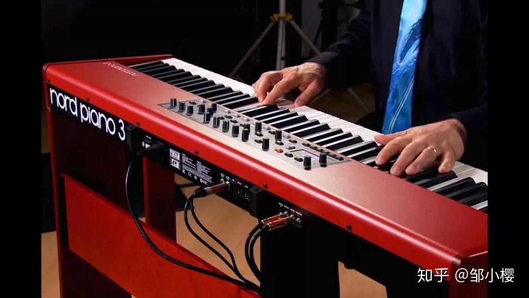 翔哥和三少则给我推荐了NORD。一看他们就是搞电子的,前年跟着陈奕迅跑C` mon in~校园巡回演唱会,《谁来剪月光》就是一首完全用钢琴伴奏的曲子,而陈奕迅乐队用的正是骚气拉风的NORD Piano 3,那个红色让人难忘。