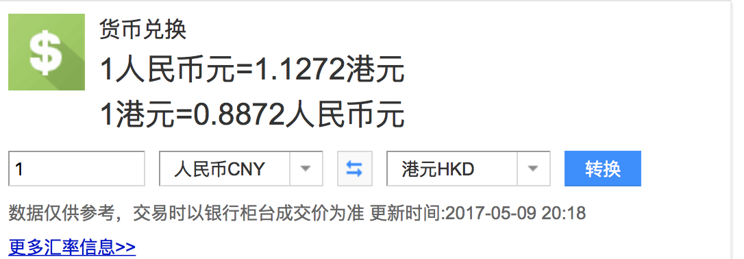 下图是某天在百度上看到的港币兑换人民币的汇率: