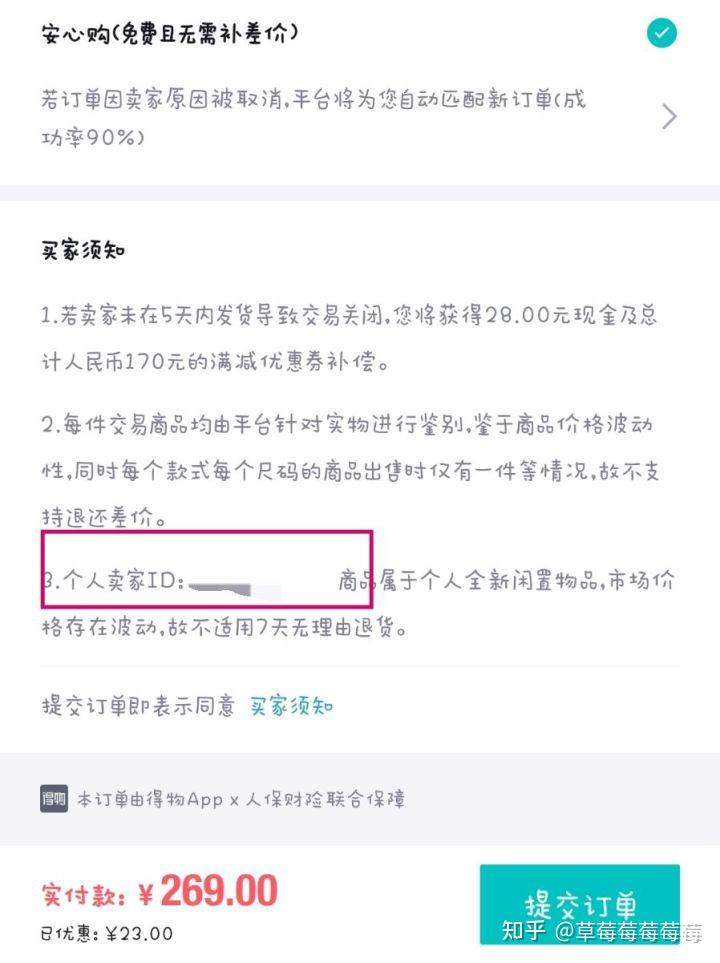 这可咋办啊,退也不是不退也不是,而且看到好多知乎大佬说一般个人卖家都是,买到觉得不合适(码子不合适有溢胶鞋头不对称)自己不能接受,退货要出补偿费(就不止刚刚的卖家被取消订单的补偿费、卖家运费还有得物的抽取,自己寄出还得有运费),得物客服会推荐你成为个人卖家,95闲置卖出去!!!!所以都怪我,第一次下单没有瞅清楚