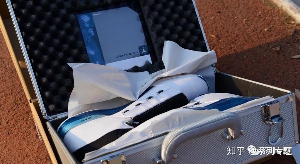 放在金属鞋盒(箱)里被拿去售卖,鞋面的包裹以及延续了AJ5的鞋带扣。