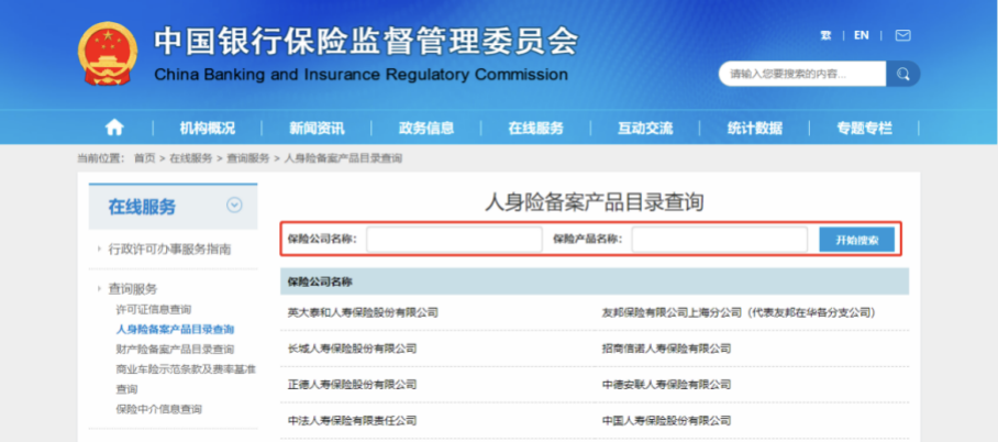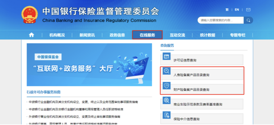 首先可以登录银保监会官网,点击在线服务,再选择人身/财产备案产品查询,