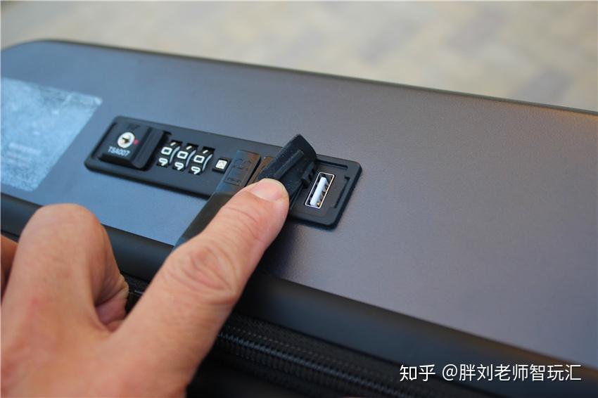 还记得刚才说过的电源线吗?其奥秘就是地平线8号旅行箱的TSA密码锁功能盘上。