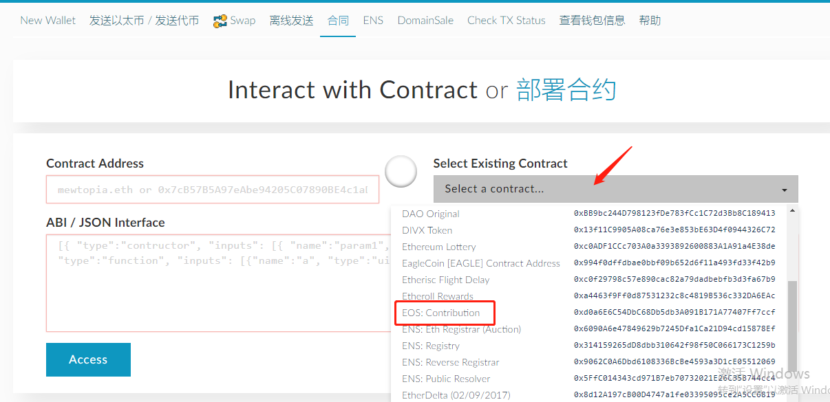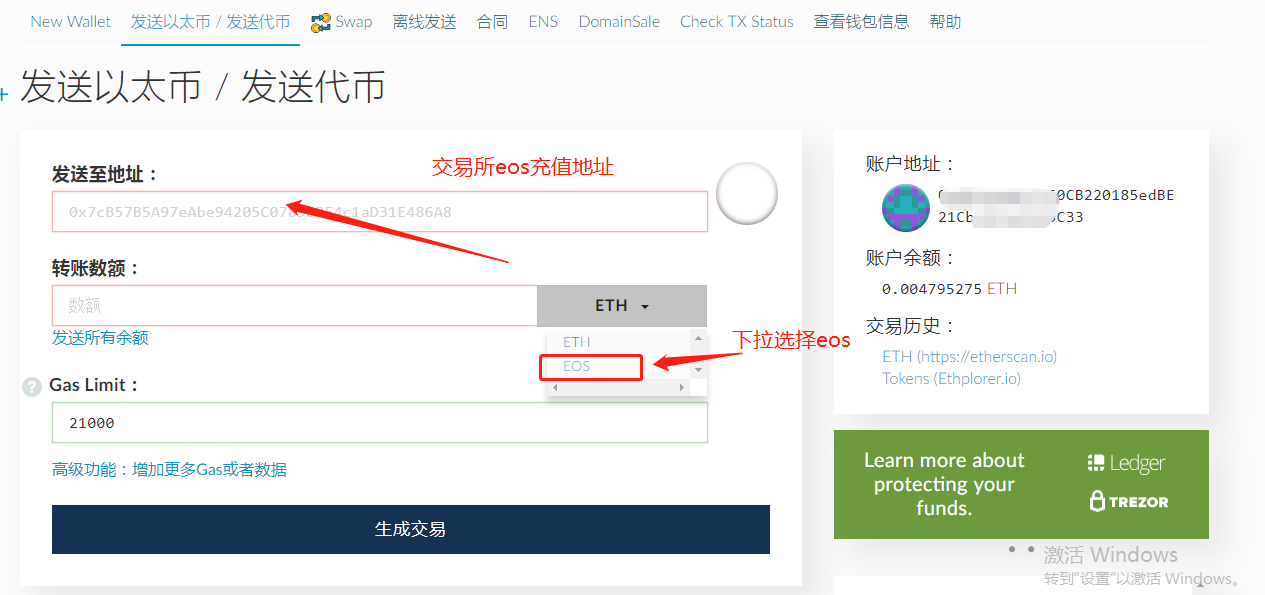 地址填eos众筹地址:0xd0a6E6C54DbC68Db5db3A091B171A77407Ff7ccf
