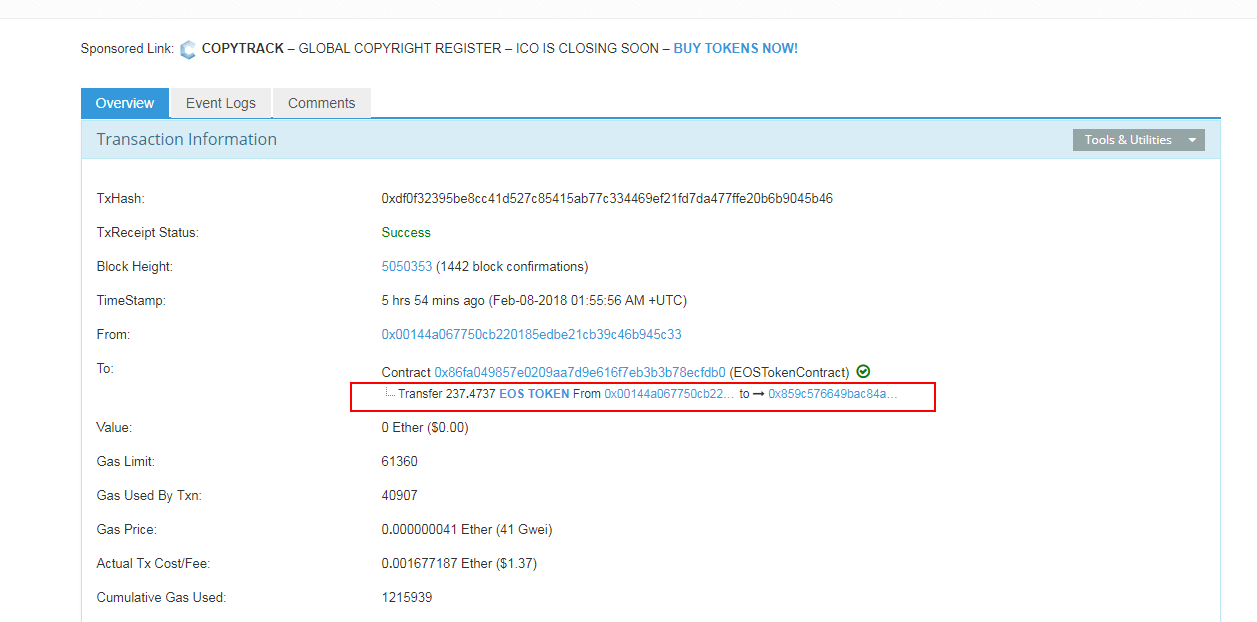查询交易信息状态,如果看到“transfer xxx EOS TOKEN”,说明提取成功。