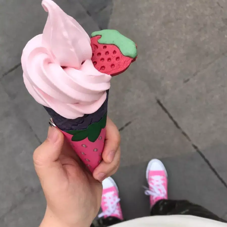 ”夏天草莓圣代和脏粉更配呀 “