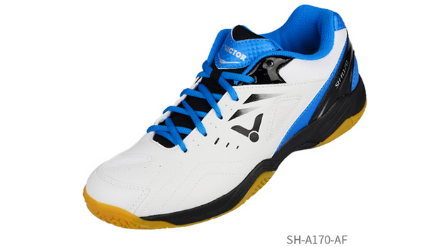威克多SH-A170AF羽毛球鞋固定鞋带与鞋舌,减少左右侧滑时对脚部的损伤。鞋面和鞋帮依据人体脚背和脚踝形状,采用曲线包裹设计,包裹性好,穿着舒适。