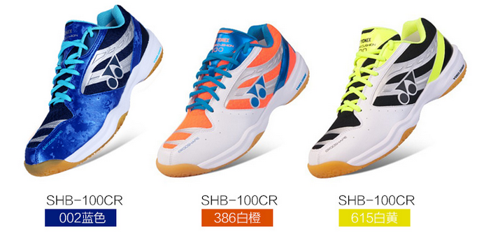 尤尼克斯SHB-100CR有三色可选002蓝色、386白橙、615白黄,鞋面是聚氨酯合成革+织物,鞋底是EVA+动力垫+防滑橡胶材质,外底采用六角形胶粒橡胶大底,抓地力稳固。这款羽毛球鞋属于轻量型羽毛球鞋,材料轻量的辅助材料增加中底的稳定性,包裹性好,减少运动伤害。外观上个人比较喜欢白黄和白橙这辆款,尺码正好(如果尺码不明确可以咨询客服)。