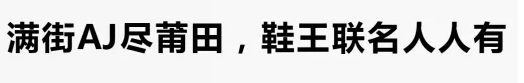 在这场限量鞋的游戏中,看上去都是赢家: 各家运动鞋品牌:通过限量炒作,知名度和美誉度得到提升,还获得了不菲的溢价。像NIKE旗下的AJ,现在已经成为比Nike更“高端”的子品牌; 代言的明星:用自己的名气和鞋厂合作发售新鞋,或者干脆只需要穿上鞋“无意”地走到镜头里,自然有粉丝蜂拥而来。