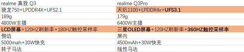 realme Q3 Pro和realme Q3对比如下:
