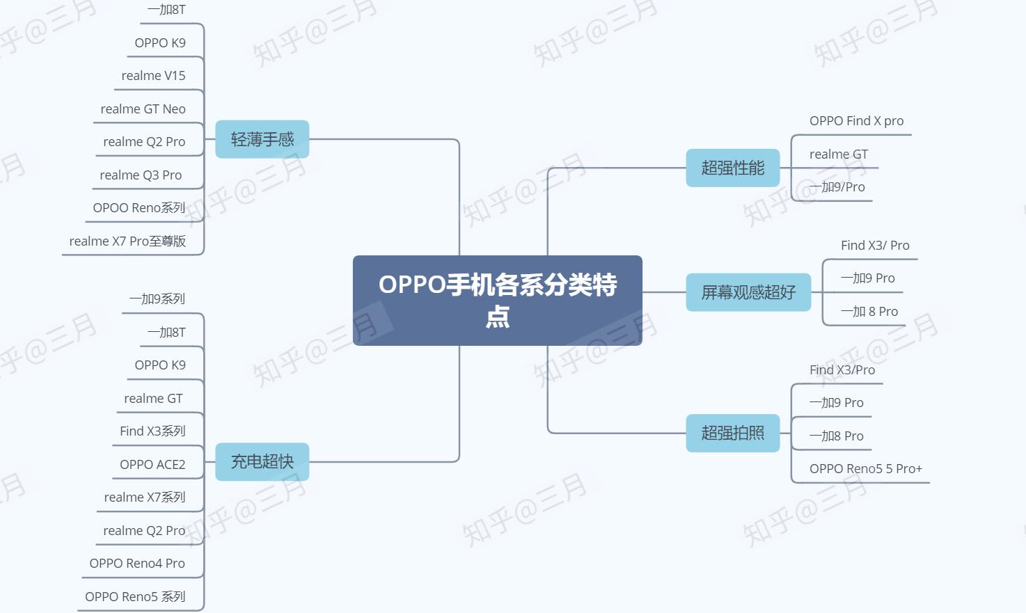 OPPO手机各系特点可参照这张图,明确自己需求选购。