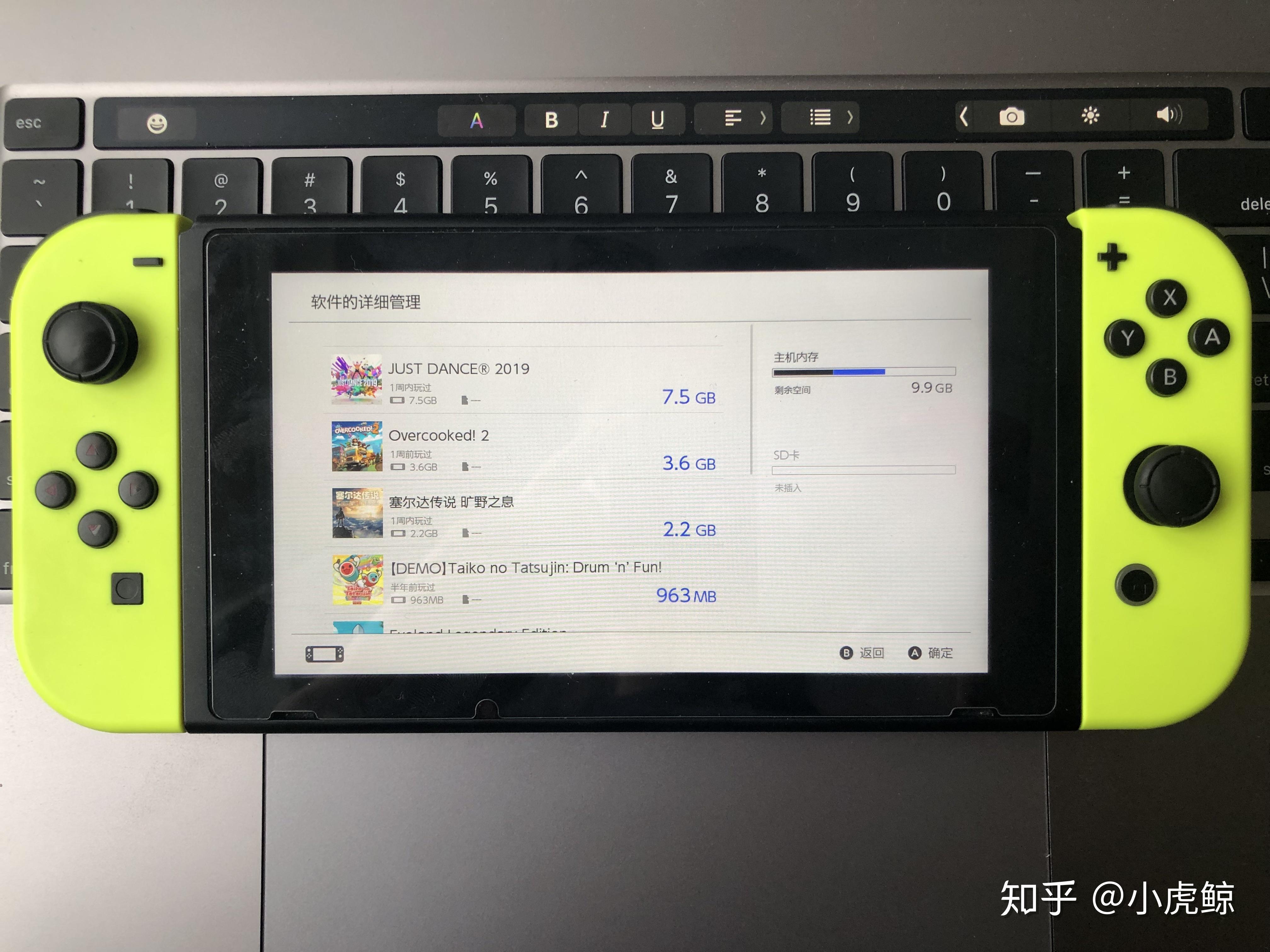 下面是我的使用情况,just dancen是买的数字版。但是overcook和塞尔达都是买的卡带,它们两个的下载包也已经占了6个g的容量。之前还有Arms的数据,我觉得太占地方就给删了。照这样下去,我肯定早晚也是要买一张扩容卡的。