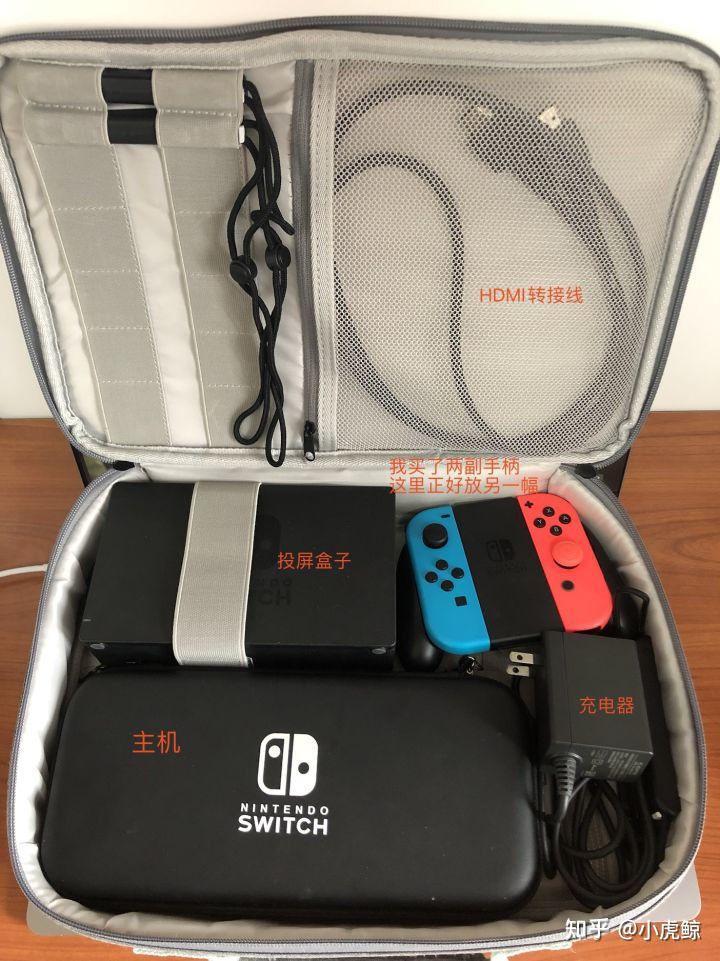 收纳包能装下所有的配件和转接线,这个去别人家玩儿的时候一拎就走,特别方便,平时放在家里也可以做收纳的作用。毕竟除了主机之外switch的配件还是挺多的。