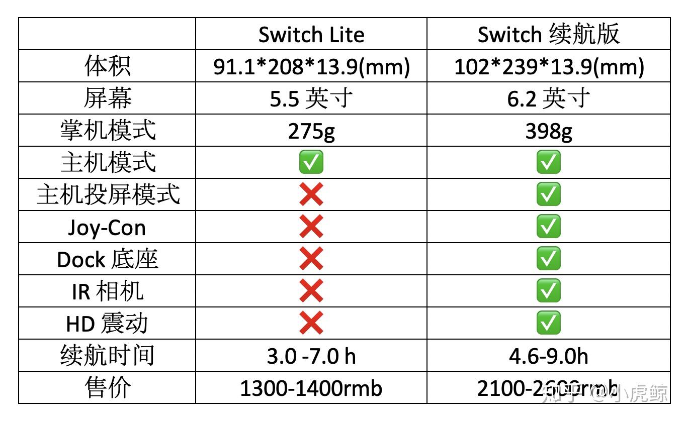 两个版本价格差了700-800左右,但是Switch Lite却缺少了可投屏的模式,可以拆卸的JOY-CON,红外相机和HD震动。并且,有很多的游戏只支持JOY-CON,所以Switch Lite也会损失一部分游戏的游玩权利。