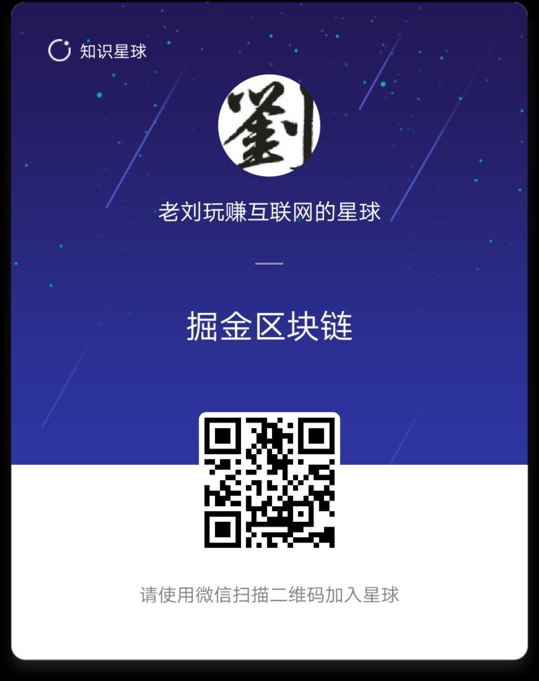 如果你想了解更多区块链赚钱的秘密,也可以扫描下面二维码加入老刘的掘金区块链知识星球,每天分享区块链的赚钱信息及资讯,老刘带你掘金区块链!