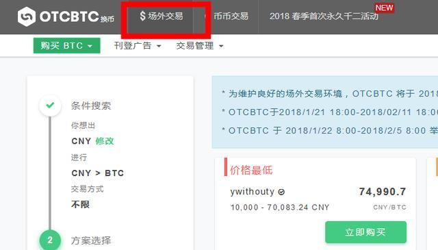 在 OTCBTC 上有两种方式可以购买数字币,一种是使用搜索系统,另一种是刊登购买数字币广告。