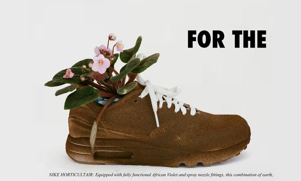 Ava Nirui 通过这件作品在和观众猜一个谜语,而图片里出现的一切都可能是线索。也许就像那只插满刀片的 Air Max 97 一样,这只鞋初看可能并不知道其中的含义。先别急,让我们先看看 Ava Nirui 自己对这件作品的解释是什么。她把这件作品称作——耐克园艺(Nike Hortcultair)在之后的描述中她说:“装入了非洲堇、喷水设备的鞋子,这是一个生态组合。”看到这样的说明,你可能还是有点不明白 Ava Nuri 在意图表达什么,但是再仔细想想图片中的细节和出现的事物,Ava 的心思可能就会一目了然了。
