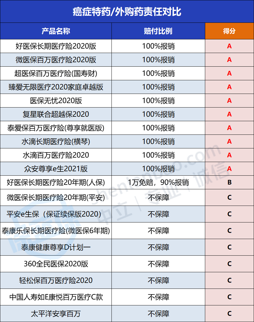 五、第三轮对比:癌症特药/外购药保不保?