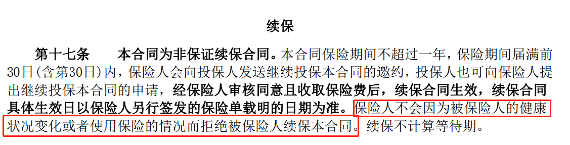 意味着保障到期后,被保人不会因为健康状况或历史理赔情况而无法续保。