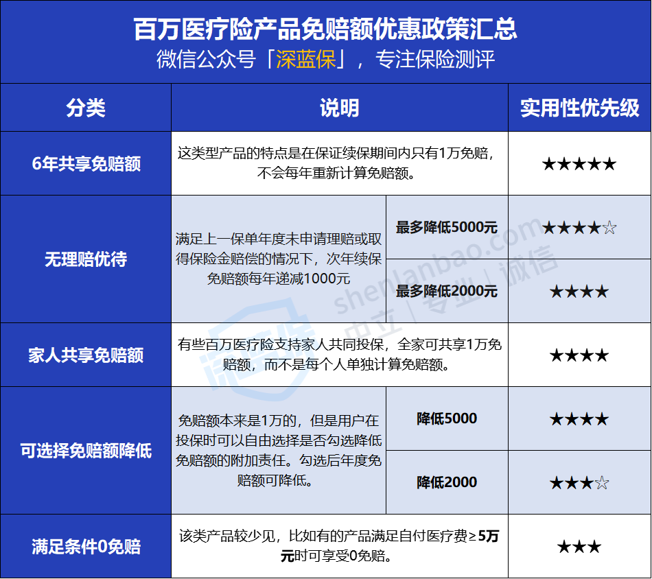 免赔额有优惠,6年共用1万额度,相当实用;