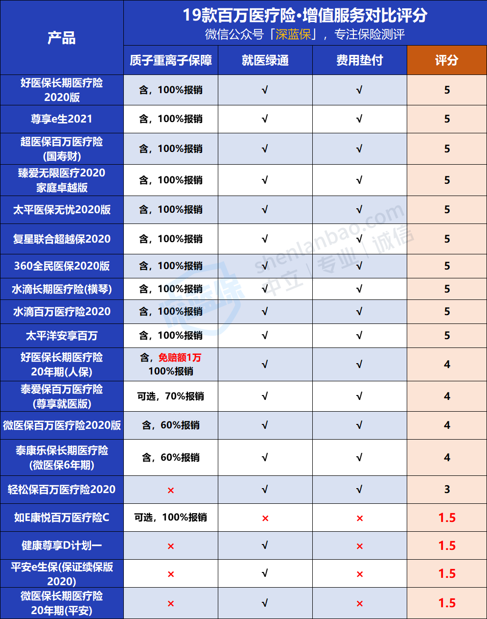 泰康健康尊享D、平安e生保(保障续保版2020)、微医保20年期3款产品,既不含医疗费用垫付,又不含质子重离子医疗;