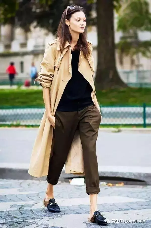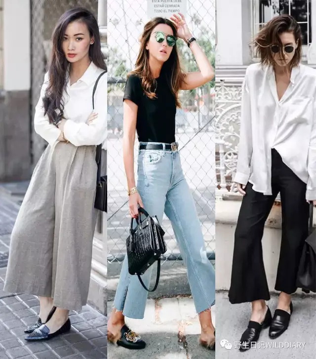 乐福鞋搭配阔腿裤,