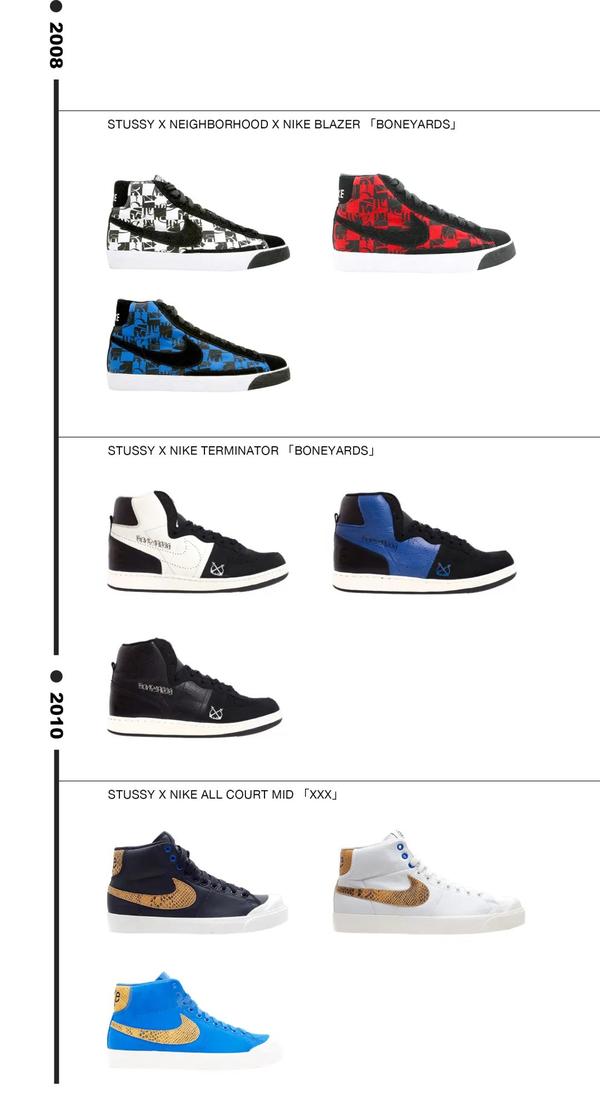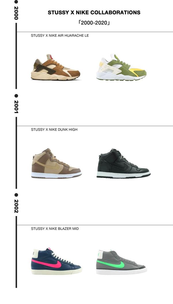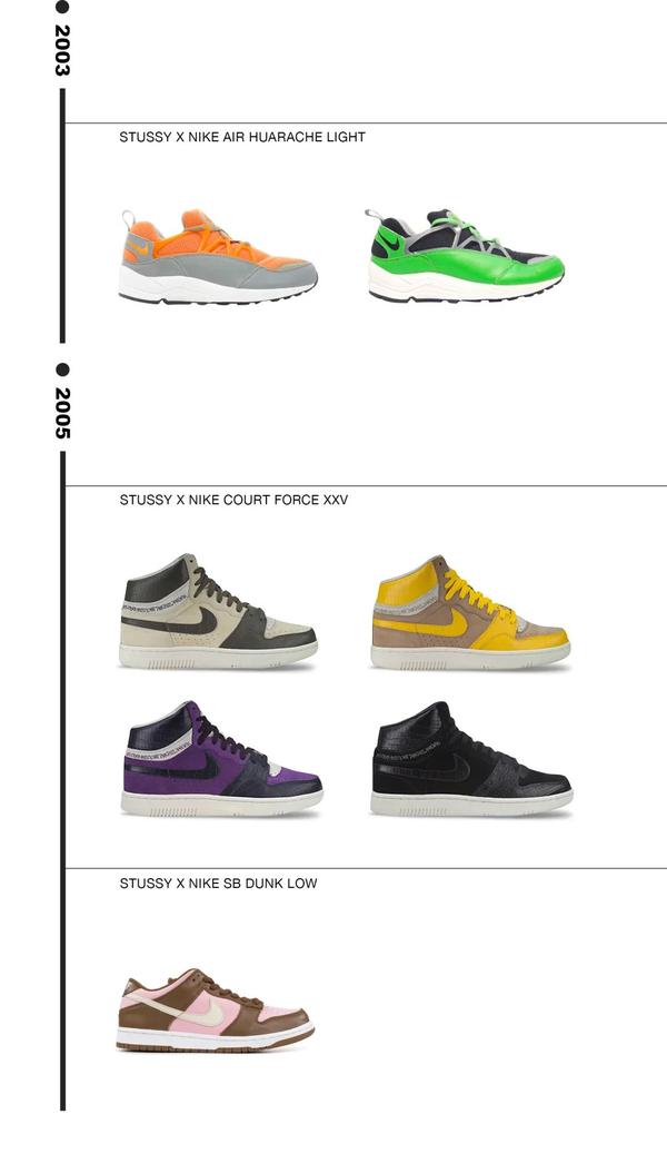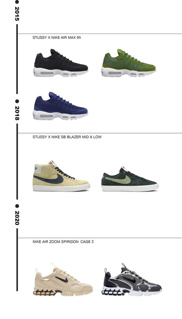 以上便是笔者总结出的在过去的20年中Stüssy携手Nike打造的联乘鞋款。其实笔者也有思考过,我要不要挑选出其中的某几款特别的鞋子,来和大家讲述它所演绎的故事,或是其推出的特别理由,但最终我们还是选择了这样方式来进行诠释。因为只有这样,我们才能更加清晰的看出品牌在合作中思路所发生的转变。