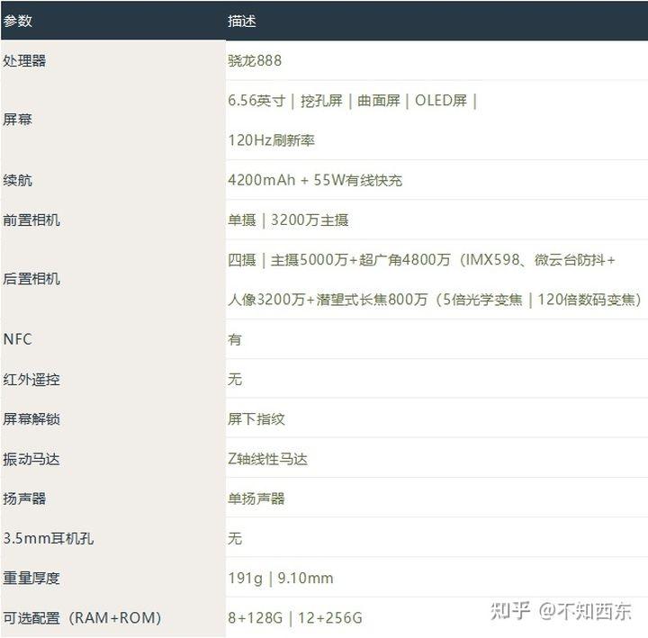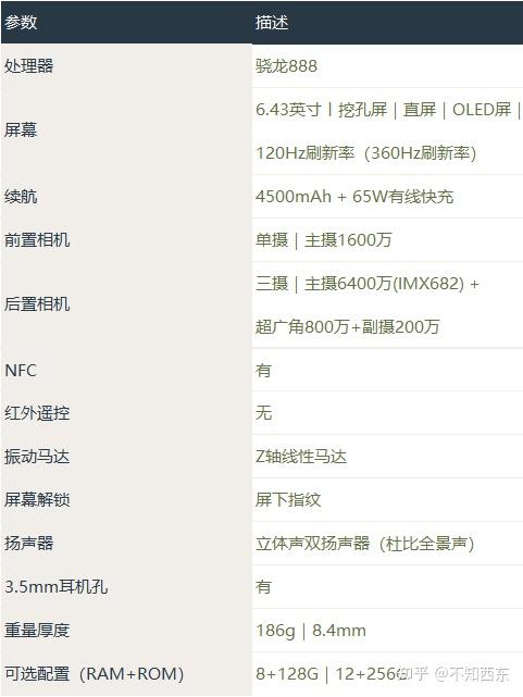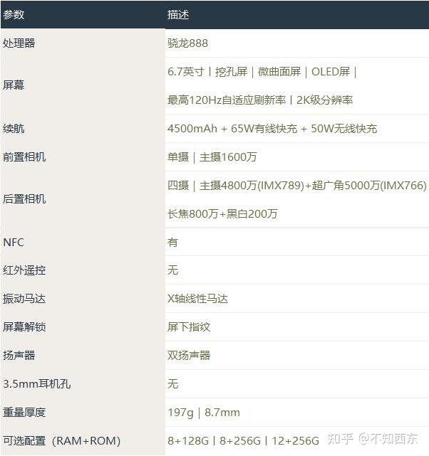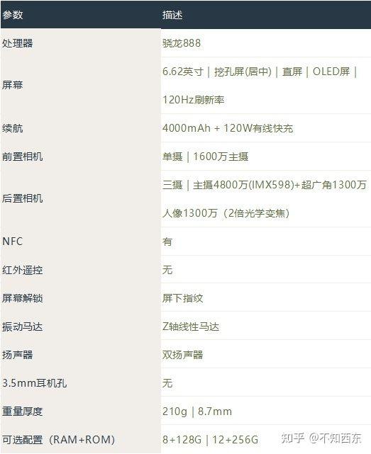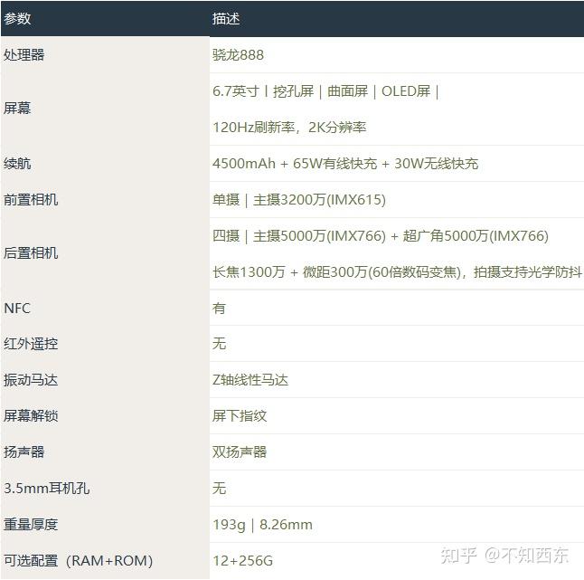 - 骁龙888+满血版LPDDR5+UFS3.1,目前高端旗舰机标准配置,性能强