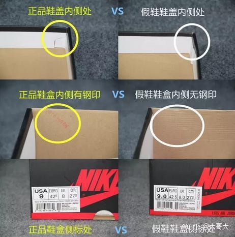 鞋盒的钢印是鉴别鞋子的一个重要依据,此外还有一些细节,比如说:盒子的交接处。正品鞋盒有衔接,而假鞋盒一般是没有的。