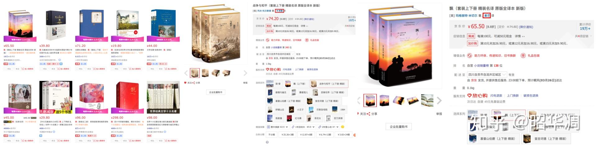 比如“飘”上网一搜诸多版本,在不了解译者的情况下可以从出版社入手。这里有个雷大家注意,很多名著的译者都是麦芒或者羊清露,我看过一本羊清露翻译的“战争与和平”,不是翻译的不准,反正读起来就很别扭,第一页都能明显感觉。于是上网搜了一下是何方神圣,在网上找到个答案,据说这种笔名是把一本名著的几种译本合并拼凑出来的版本,所以大家购买的时候注意一点,京东的慧源通出版社就特爱出这个版,销量还特高