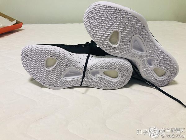 鞋子上脚的感觉还是十分不错的,虽然没有AJ32一样软弹,但是却也比欧文4舒服了不少,可以说是介于两者之间的一种脚感。