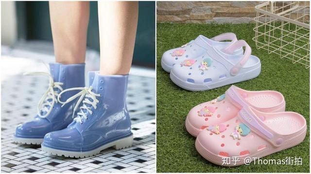 甚至出现一些代替雨鞋的鞋子,例如塑胶感强烈的马丁鞋、洞洞鞋等等。