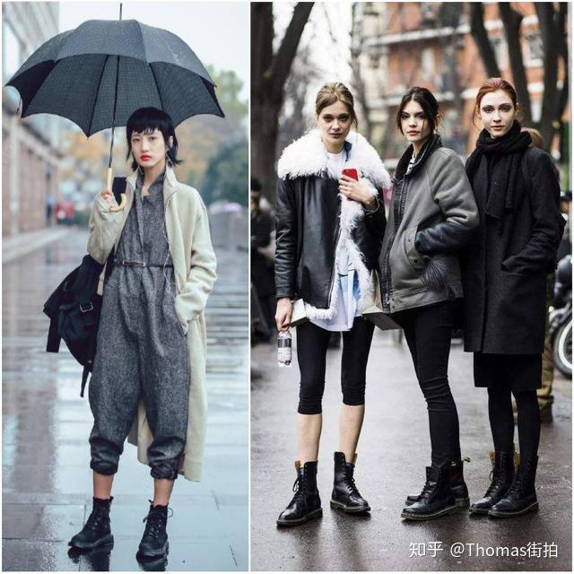 由于马丁靴带有硬朗的男性气质,女生穿搭起来在雨天里面,必定也是很吸睛的。