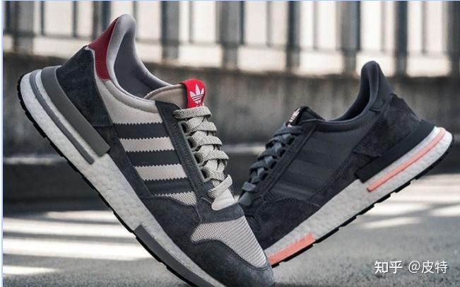 下图是ZX 500原版,现在推出带有 Boost 的升级版本 ZX500 RM,因其搭载了全掌 Boost 缓震科技,前掌外侧及后跟处的 TPU 贴片既增强稳定性,又是对经典致敬。