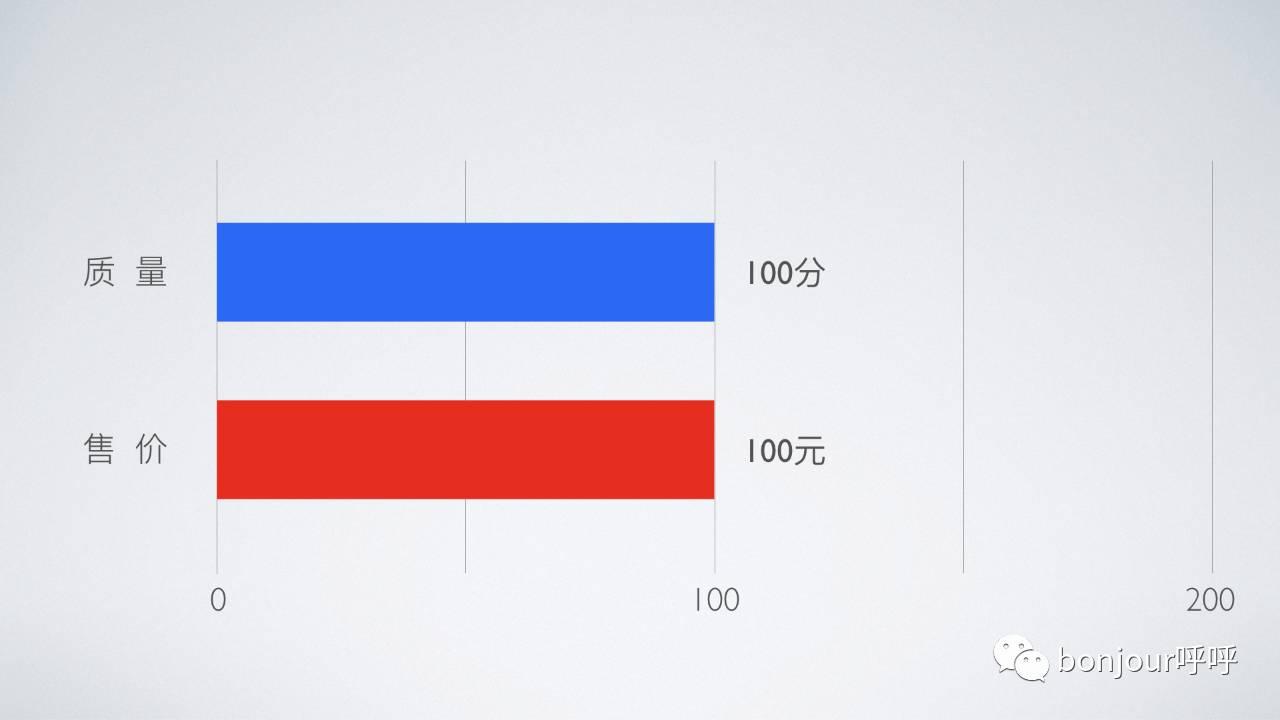 比如,一个价值100分的产品,卖100块钱是最合适的,那么会有这样的效果