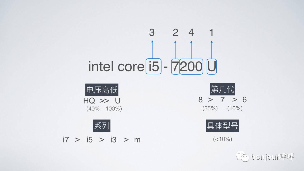 如果大家需要详细的资料,可以扫码或搜索,关注我的微信公众号,bonjour呼呼,在后台回复“CPU”三个字母,就可以得到目前最新的CPU天梯表,包含了单核性能,多核性能以及功耗等3个技术指标,供大家买电脑的时候参考。当然也欢迎留言跟我互动,目前人还不多,我基本上每条都会回复。