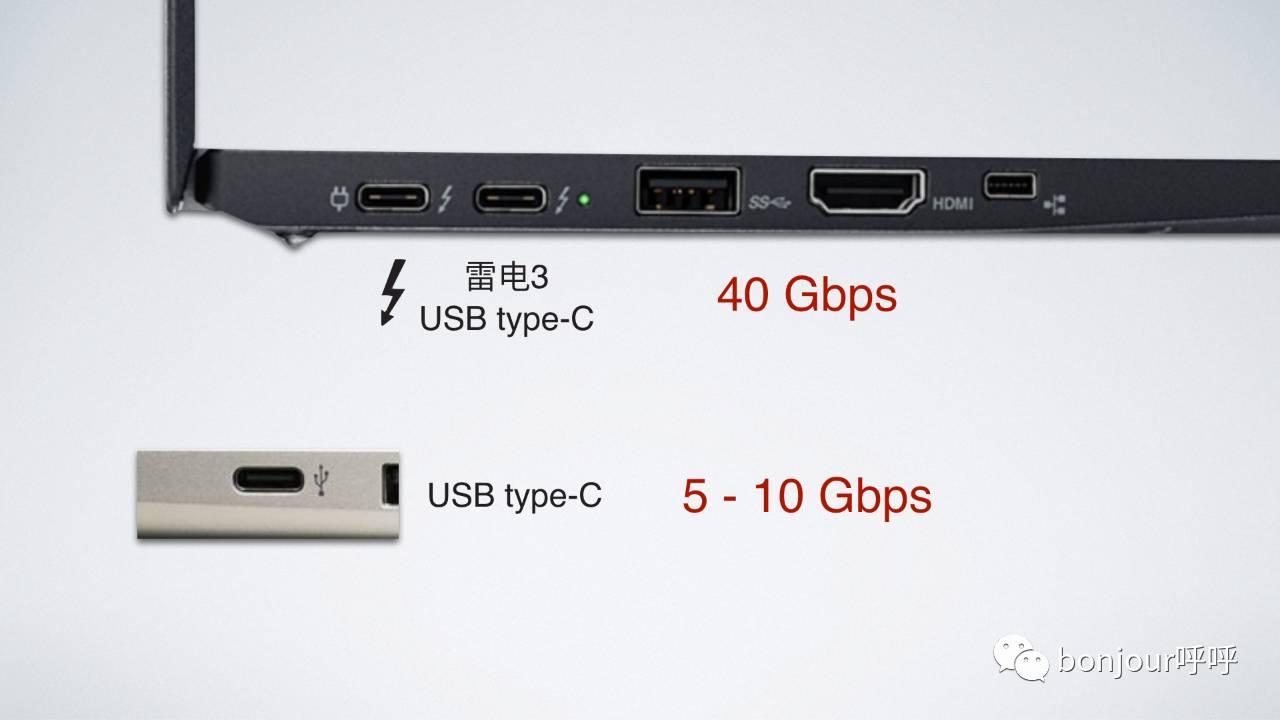 雷电3的接口,速度有40G每秒,而普通的type-C速度只有5G或者10G每秒。