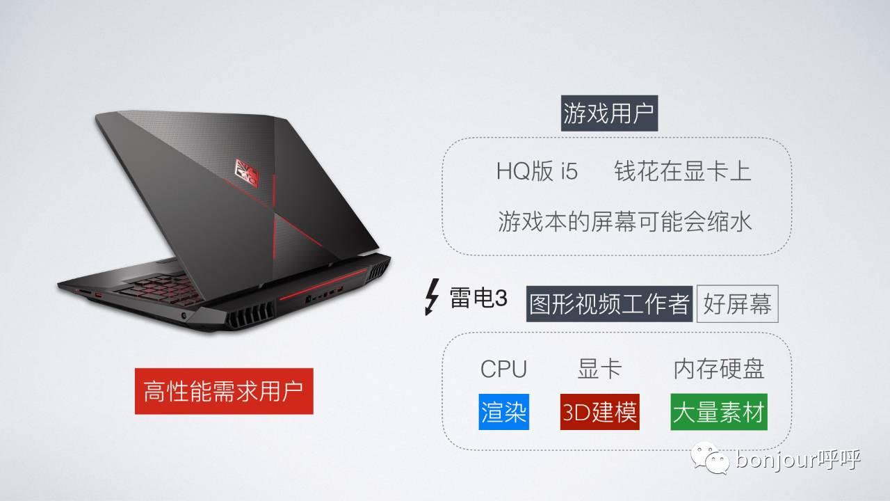 分两类,第一类是游戏玩家,这部分主要关注的是显卡,CPU其实HQ版的i5就可以了,升级i7对玩游戏的意义并不大,这些钱用来把显卡从1050升级到1060效果会好很多。另外,很多游戏本,为了做出更好的价格,经常会在屏幕上缩水,比如很好的CPU和显卡,但是配了一块低色域的tn屏幕,要注意一下。当然,你也可以为了便宜一些,故意选差一些的屏幕。