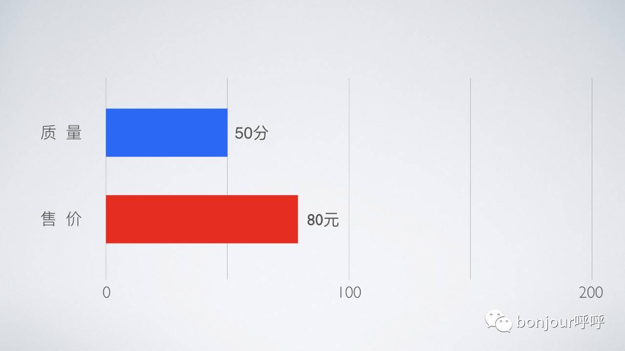 也有人说,我嫌100块太贵,只想花80块钱。但是,少了20块钱,你的产品价值并不是80分,而是被减少到了50分。