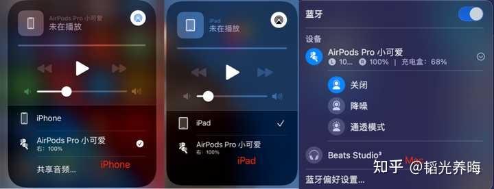 例如:正在用iPhone手机配对AirPods Pro ,那么你打开iPad的时候就可以直接无缝切换,无需再单独去链接蓝牙,这点很方便,下面有个视频演示