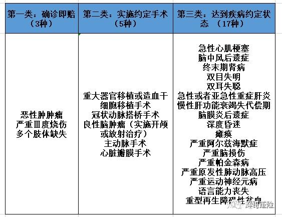 如图所示,25种病里面,只有3种是确诊即赔,5种是实施了治疗才赔,17种是要达到预定的状态才能赔。
