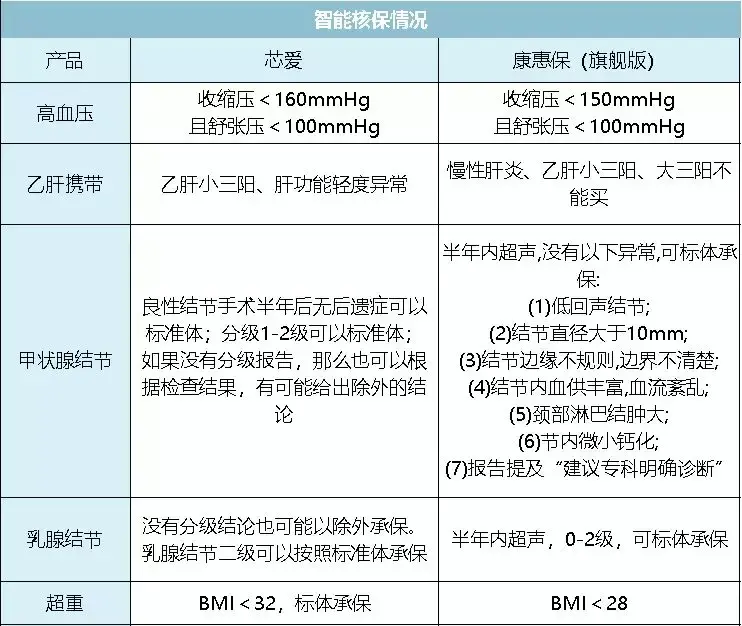 在很多健康问题上,芯爱要比康惠保宽松很多: