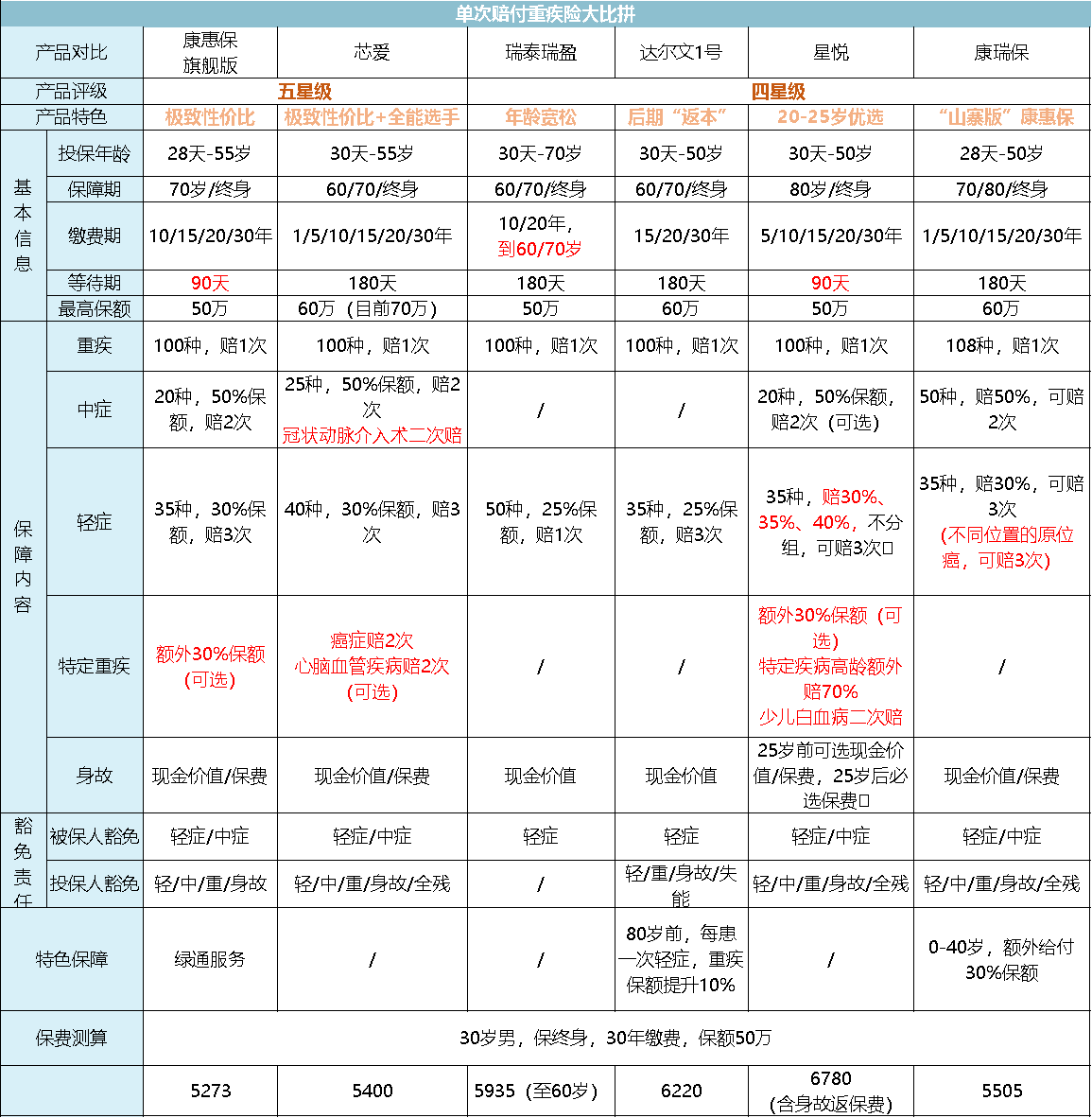 热门重疾险对比
