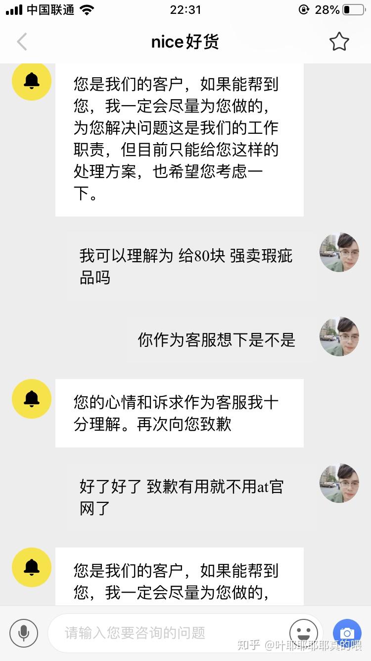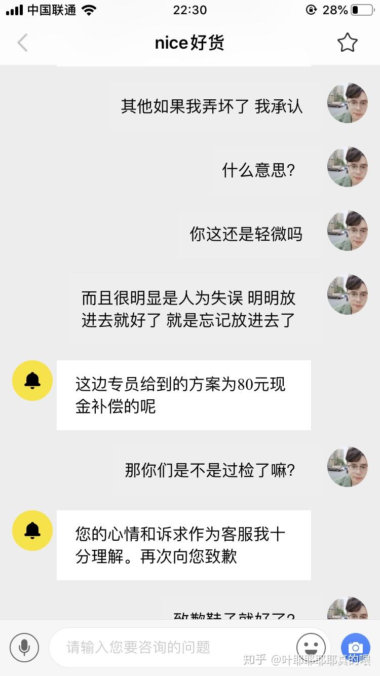 然后晚上问客服就是另一个态度 相当于给我80块强卖瑕疵品给我。这就是nice的处理态度?
