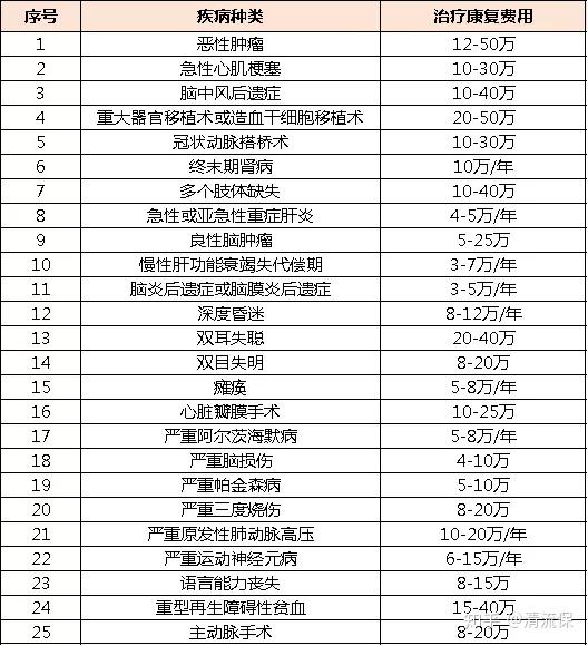 这25种重大疾病覆盖了90%以上的发病率,