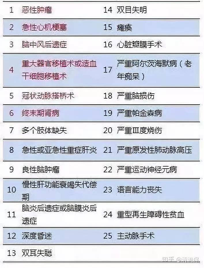 银保监会规定,重疾险必须包含25种常见重大疾病,
